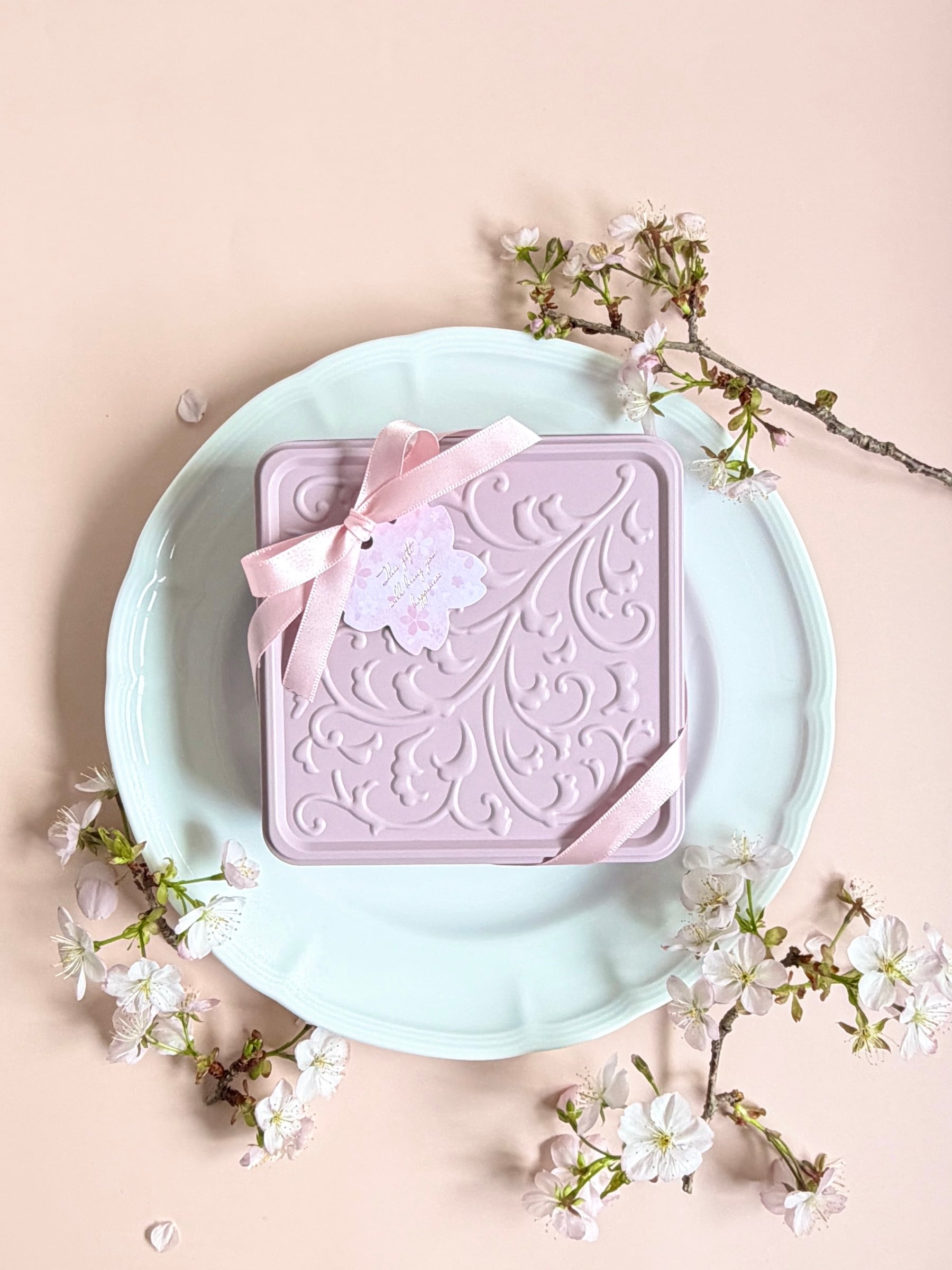 ラッピングも桜を感じるリボンと桜タグ仕上げました。